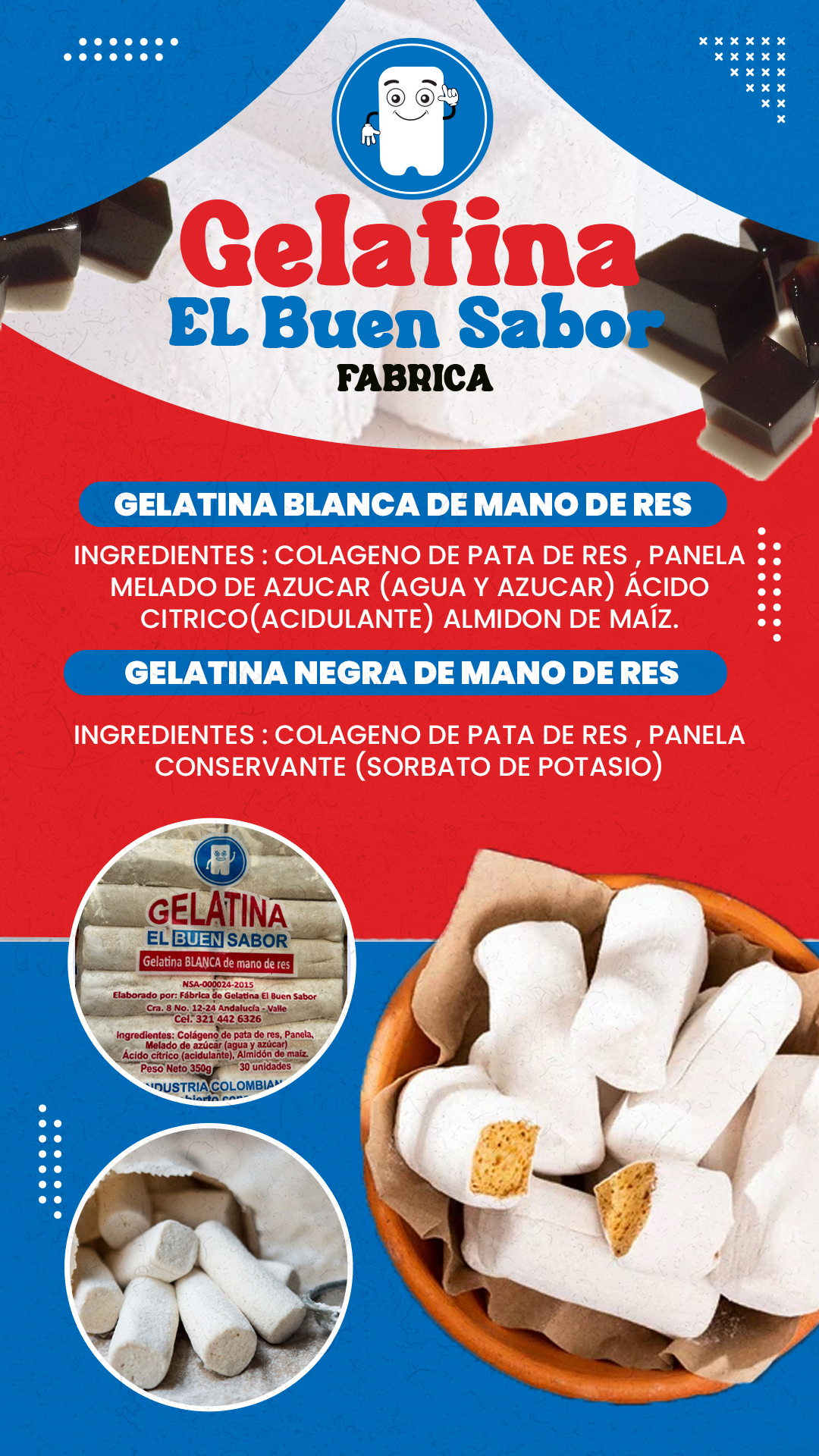 “En nuestra empresa, ofrecemos una gama excepcional de gelatinas que deleitan todos los sentidos. Desde la exquisita suavidad de nuestra gelatina blanca hasta la audaz y sorprendente gelatina negra, cada una es una experiencia culinaria inigualable. Sumérgete en la profundidad del sabor con nuestra gelatina sabor a café, que captura la esencia misma de esta bebida reconfortante. Además, explorarás un mundo de emocionantes combinaciones con nuestras gelatinas de sabores, donde la creatividad se encuentra con lo delicioso. Nuestra pasión por ofrecer variedad, calidad y placer sensorial define cada una de nuestras gelatinas, llevando la experiencia de disfrutar un postre a un nivel completamente nuevo.”