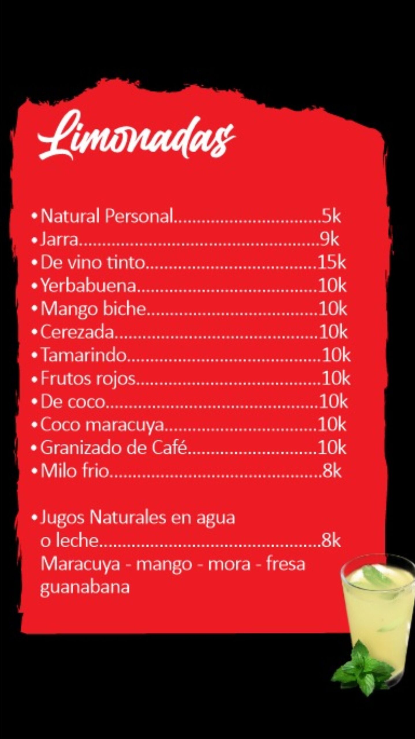 Acompaña tu comida con nuestras limonadas refrescantes o nuestras bebidas calientes, perfectas para cualquier momento del día.