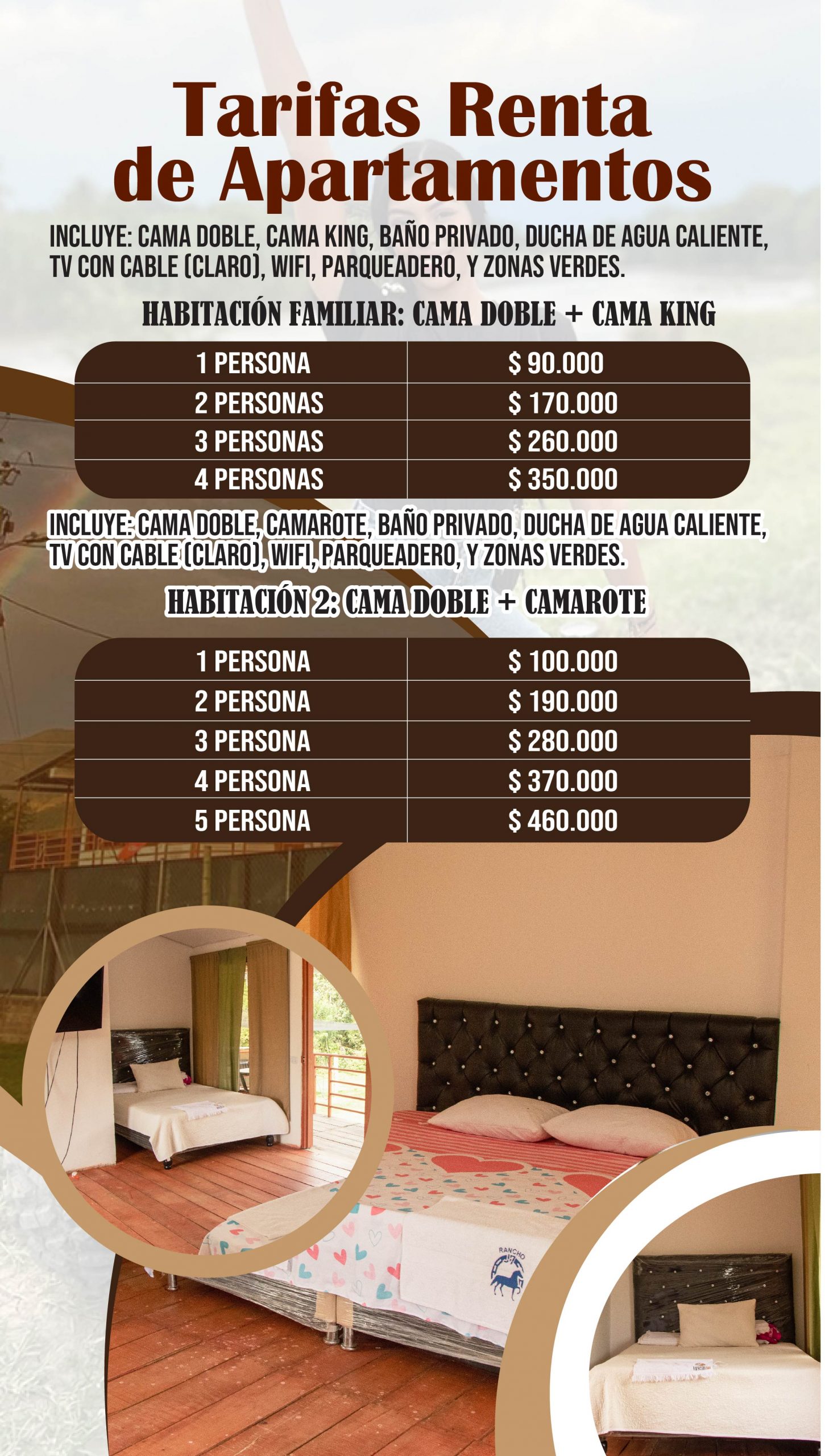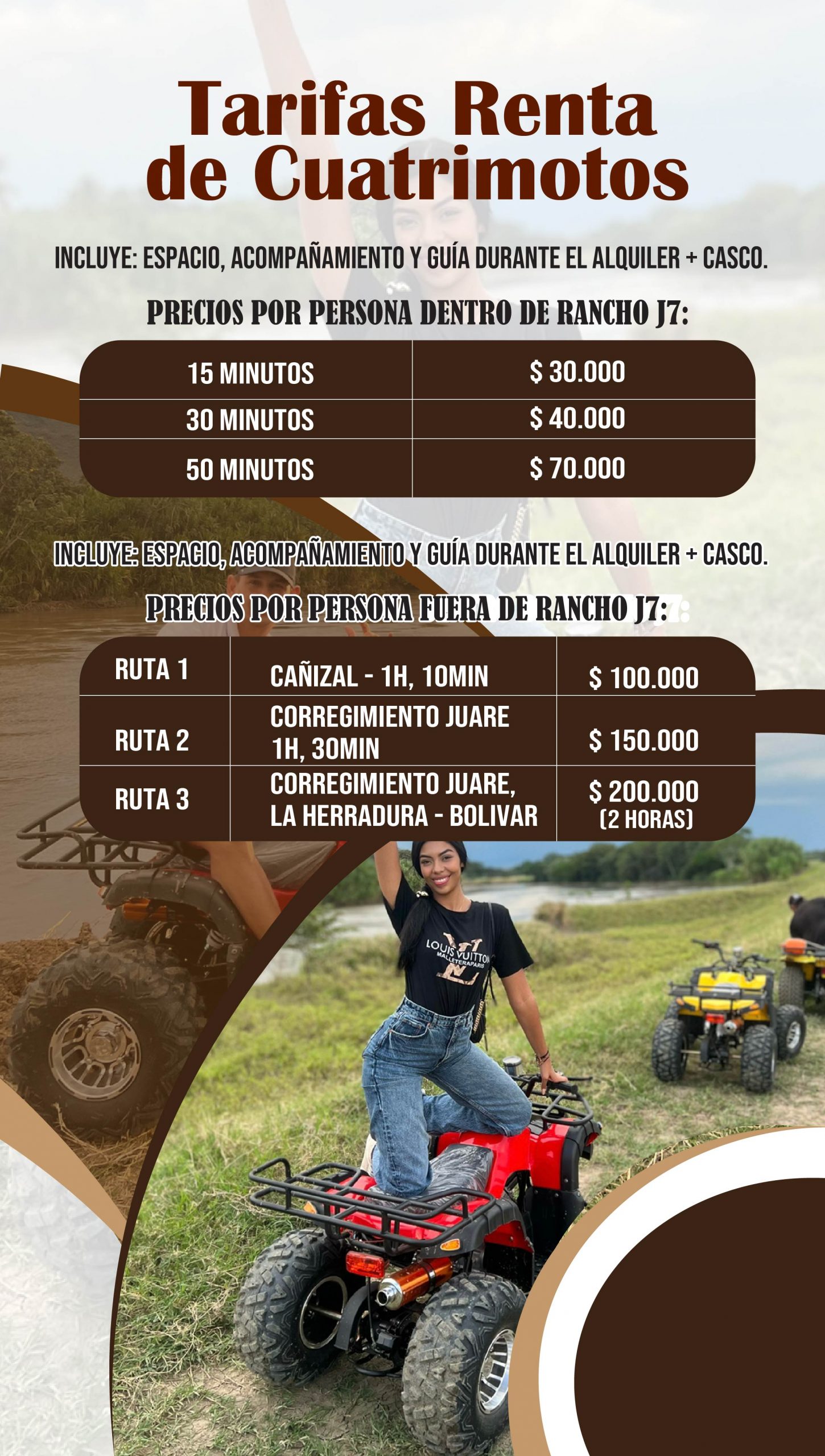 Entre nuestros servicios, destacamos el alquiler de cuatrimotos y caballos, perfectos para explorar la zona y descubrir sus paisajes más espectaculares. También ofrecemos caminatas ecológicas guiadas por expertos, que le permitirán conocer la flora y fauna local y aprender sobre la importancia de la conservación del medio ambiente.